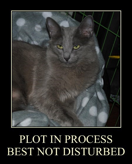 I'm plotting. This is kind of a constant for me, and also a great answer when someone asks me what I'm doing, because most people don't expect that response.